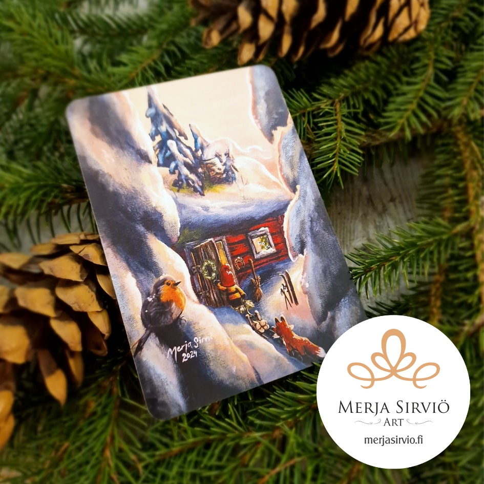 Kosketa ystäväsi sydäntä Merja Sirviö Art -joulukortilla, joka jättää unohtumattoman muiston. Nämä herkät kortit tarjoavat ainutlaatuisen taide-elämyksen joulun odotuksen keskelle. Korttien aiheina ovat taiteilija Merja Sirviön kalkki- ja öljyvärimaalaukset.