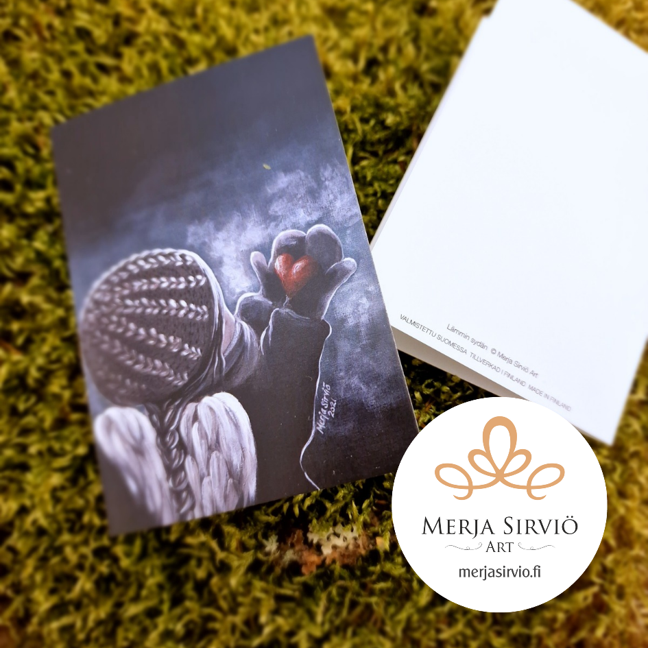 Kosketa ystäväsi sydäntä Merja Sirviö Art -pikkukortilla, joka jättää unohtumattoman muiston. Nämä herkät kortit tarjoavat ainutlaatuisen taide-elämyksen saajalleen. Korttien aiheina ovat taiteilija Merja Sirviön kalkki- ja öljyvärimaalaukset.