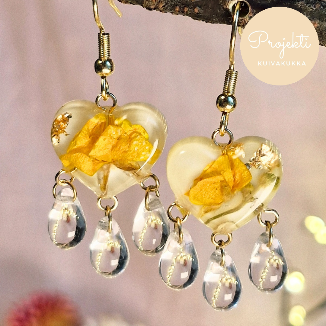 Tuo niittyjen aurinko ja kesäiset tuulenvireet osaksi tyyliäsi niittyleinikki-korvakoruilla. Käsin poimittu niittyleinikki on säilötty kirkkaaseen hartsipintaan, jossa sen kirkas keltainen väri ja herkät terälehdet pääsevät loistamaan kuin auringonsäteet heinäkuisessa niityssä. Tämä pieni kukka, täynnä kesän raikkautta ja elinvoimaa, tuo luonnon kauneuden, joka ei koskaan kuihdu.